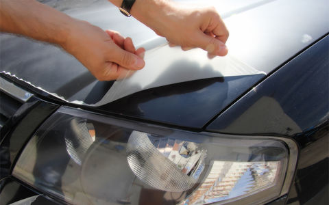 Представляет собой рулон полиуретановой пленки, из которого, точно по контурам капота, вырезается накладка. Затем такую накладку необходимо наклеить на капот. При аккуратно выполненной процедуре, такая защита не оставляет следов и не выделяется, а снимается также легко. Принцип действия заключается в распределении энергии удара от твердых частиц по большой площади и быстром ее погашении.