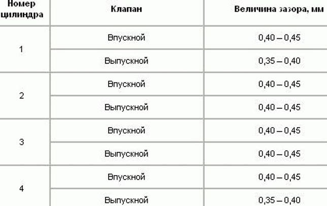 Иногда точно выставить зазор не удается — при затяжке контргайки он «уходит». В этом случае его можно оставить больше, но ни в коем случае не меньше положенного. Многих вводит в заблуждение поправочная таблица, в которой указаны зазоры для «горячей» регулировки — они тем больше, чем горячее двигатель. Но не стоит забывать, что они даются для остановленного двигателя. На работающем моторе зазоры не увеличиваются, а, наоборот, уменьшаются, так как клапаны нагреваются (и удлиняются) намного сильнее других деталей газораспределительного механизма.