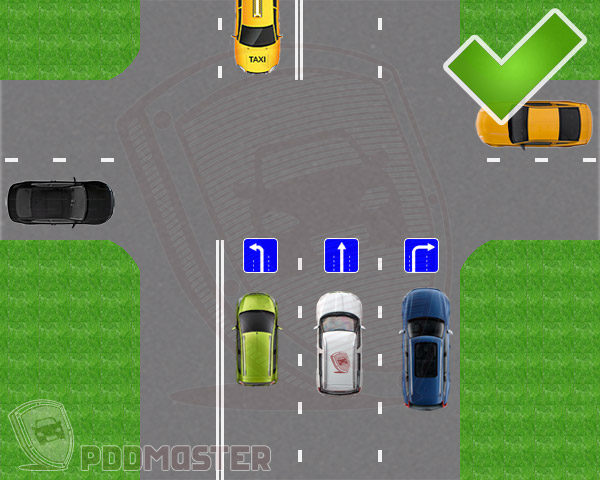 8.1. Направления движения по полосам. Количество полос движения на перекрестке и разрешенные направления движения по каждой из нихНа знаках 5.8.1, 5.8.2 может быть отражена информация об ограничениях дорожного движения на перекрестке (нанесены изображения запрещающих или предписывающих знаков). Знаки 5.8.1, 5.8.2, разрешающие поворот налево с крайней левой полосы движения, разрешают и разворот с этой полосы. Конфигурация стрелок может быть изменена в соответствии с конфигурацией конкретного перекрестка.
