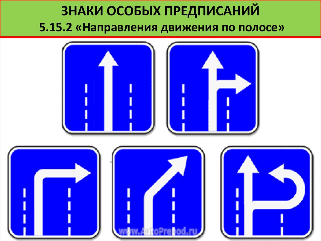 5.15.2 «Направления движения по полосе». Разрешенные направления движения по полосе.