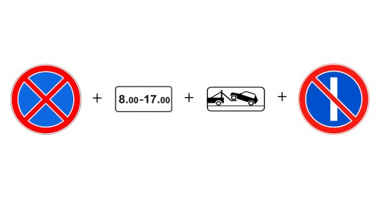 Более подробное содержание правил может быть указано на табличке под знаком «Стоянка запрещена». Например, может быть указано, что парковка запрещена только в определенные дни недели или в определенное время, и что вне этих ограничений может быть парковка с ограничением по времени.