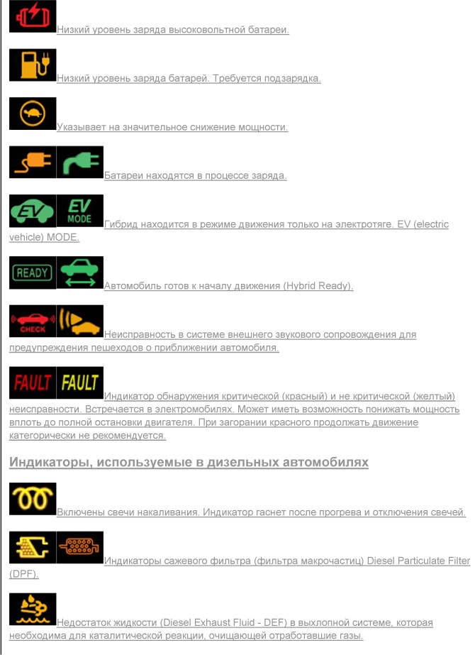 А именно посредством их машина имеет возможность сигнализировать владельцу о возможных неисправностях или других нежелательных изменениях. Кроме того, подобные значки могут предупредить автомобилиста о предполагаемом действии, которое от него требуется.