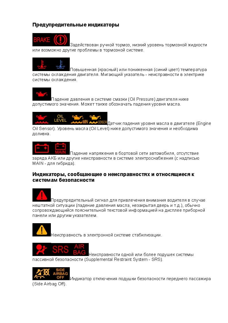 Что обозначают значки на приборной панели: предупреждающие