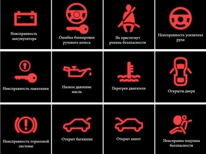 Расшифровка значков на приборной панели критического характера