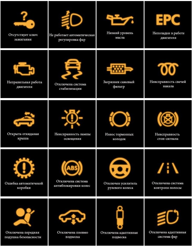 Значки на панели приборов: разъяснение обозначений
