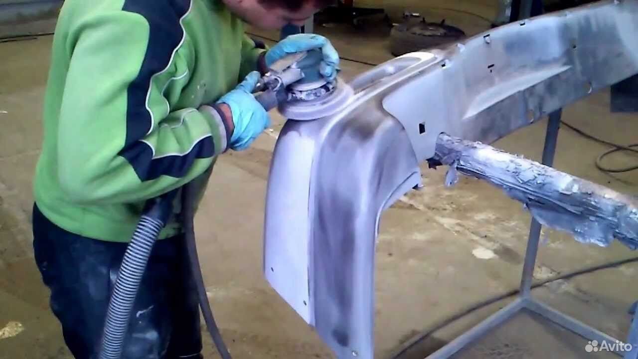 - Далее приступают к подготовительным работам. Они состоят в очистке детали путем мытья, обезжиривании, удалении лакокрасочного материала с поврежденного участка шлифовальной машиной с кругом Р240.