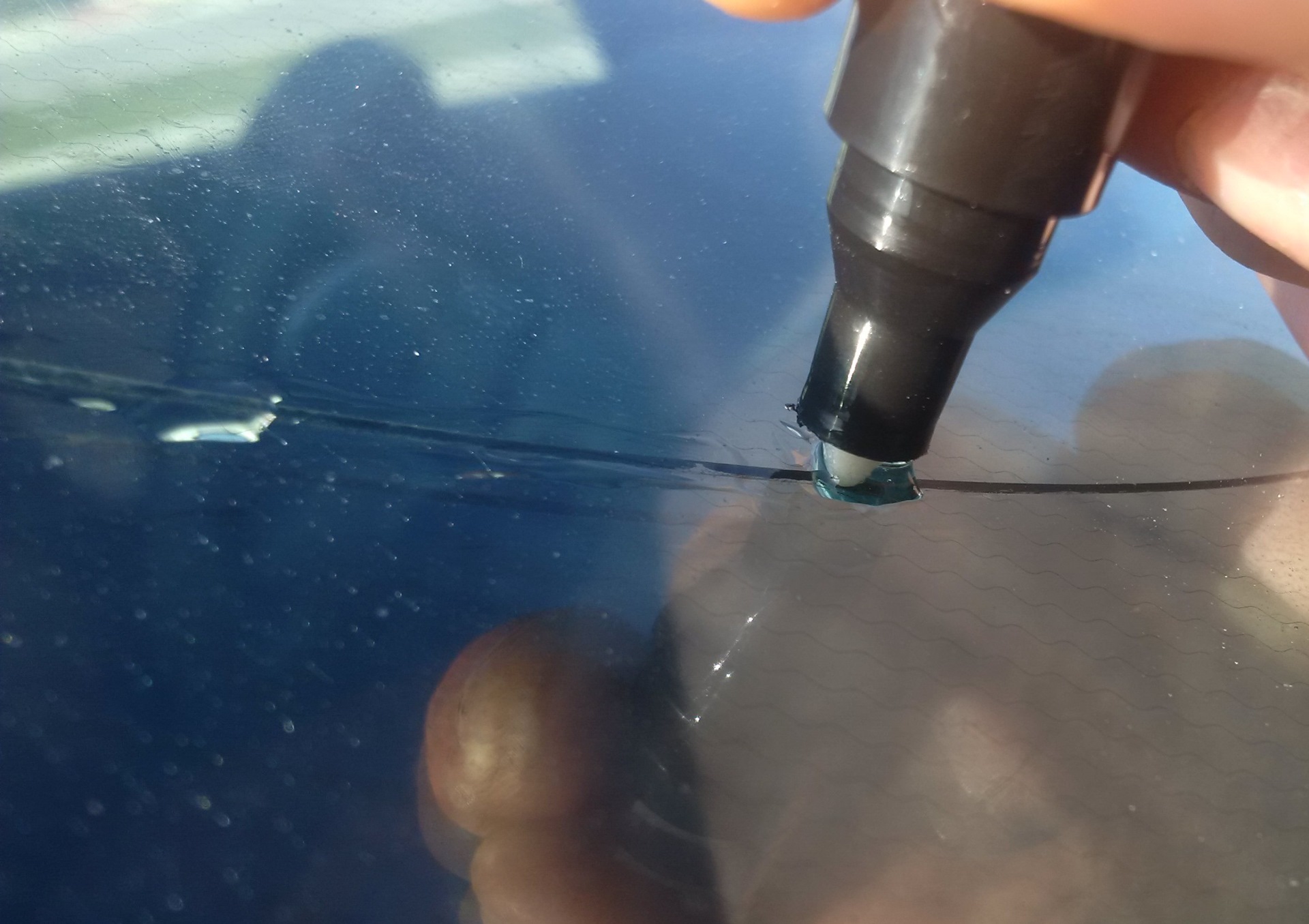 После того, как вы убедились в надежном заполнении поврежденного участка лобового стекла, рекомендуем провести простой тест для проверки отсутствия воздушных включений.