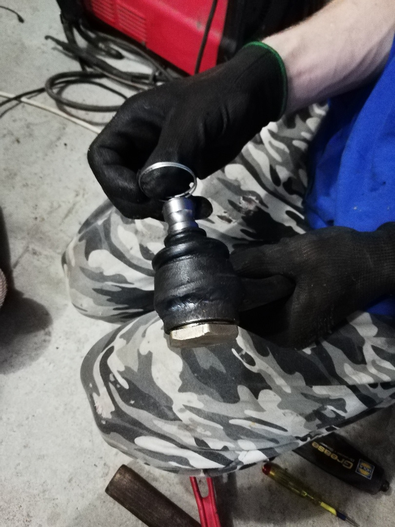 Эта технология требует наличия профессионального оборудования, поэтому развальцевать шаровую в гаражных условиях невозможно. Вырезается обжимное кольцо по диаметру шара пальца.