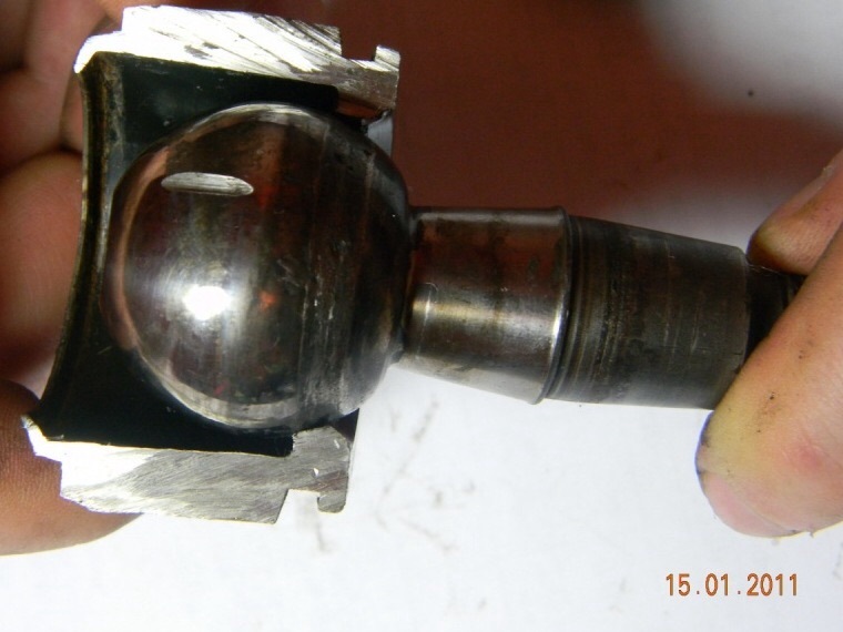 Реставрация шаровых опор рычагов таким способом, самый оптимальный вариант потому что, имея разборное шаровое соединение вы без труда смежите подтянуть шаровую опору, произвести ее обслуживание, заменить малец, сухарь верхний нижний. Суть ремонта заключается в следующем, с заводской шаровой опоры срезают завальцовку, после вытачивают чашку с крышкой под размер шаровой опоры, затем меняют нижний сухарь и верхний, шлифуем или меняем стальной палец, далее сборка с затяжкой динамометрический ключом, реставрация шаровой опоры закончена!